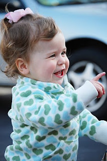 After we got home and had dinner, the weather had become pretty nice outside so we decided to do some bubbles-one of Mia's favorite things. She had a good time chasing them down and popping some of them. Thanks to Lisa for Mia's cute pullover-I love seeing her in something other than pink!